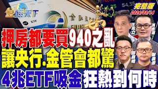 | 49 |  | 押房都要買 940之亂讓央行.金管會都驚 4兆ETF吸金狂熱到何時 ft.馮志源 謝晨彥 游庭皓 王兆立|金臨天下 完整版 20240314@tvbsmoney | 金臨天下 | 140762 | 1329 | 70 |