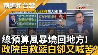| 35 |  | 被砍預算迴力鏢打到才知痛? 政院自救大反攻讓總預算風暴燒回地方 卓揆:地方補助凍50% 各市首長喊苦? 王義川:後座力全部發生│王偊菁 主持│【前進新台灣 精彩】20250124│三立新聞台 | 前進新台灣 | 168020 | 2819 | 580 |